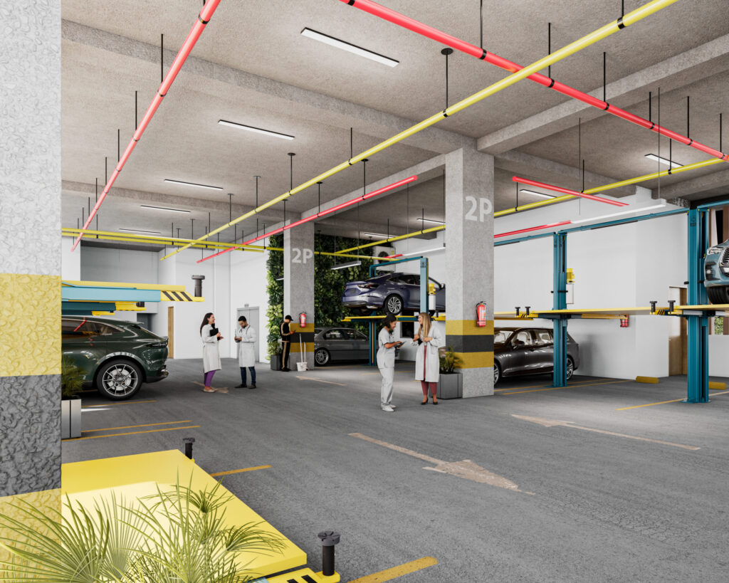 • Parqueadero privado con duplicadores para médicos